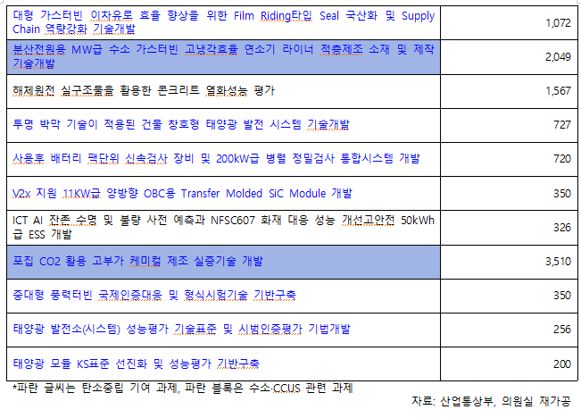 하지만 산업통상자원중소벤처기업위원회 소속 더불어민주당 박지혜 의원(의정부시갑)이 산업통상부로부터 제출받은 자료에 따르면, 2024년 ‘예산 삭감’을 사유로 중단돼 가장 큰 매몰비용을 발생시킨 것은 CCUS 관련 연구과제임이 밝혀졌다.