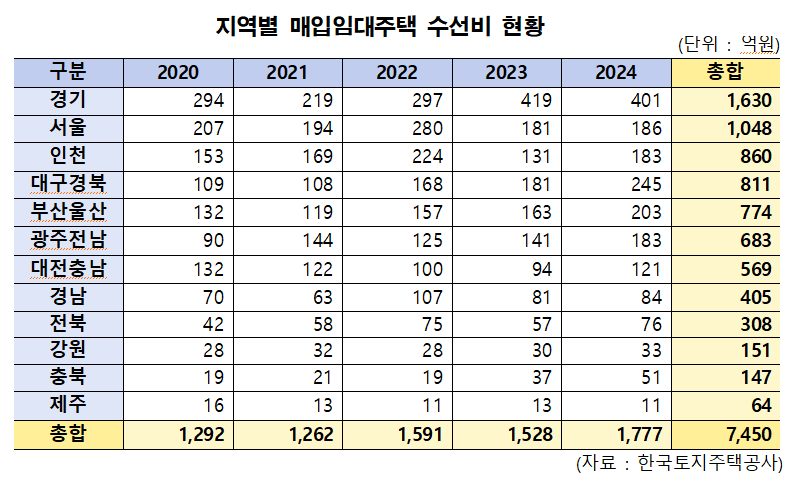 동기간 하자 수선비 총액은 총 7,450억 원으로 ▲‘20년 1,292억 원 ▲‘21년 1,262억 원 ▲‘22년 1,591억 원 ▲‘23년 1,528억 원 ▲‘24년 1,777억 원으로 전반적 증가세를 보였다.