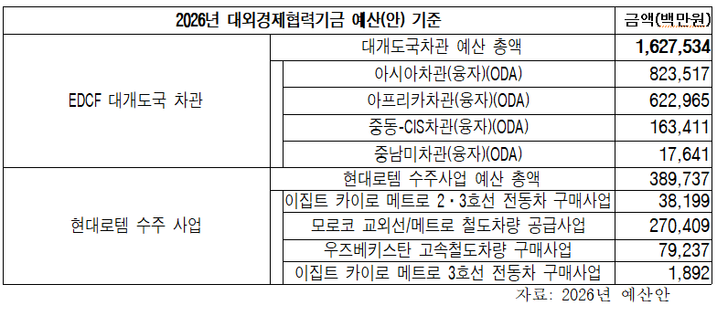 현대로템 한 곳에..내년 EDCF 개도국 차관 예산 24%, 3,900억 원 몰아줘