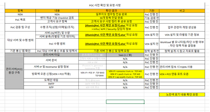 또한 △KB금융그룹에 대한 통합보안관제시스템 구축에 대한 기술과 기능에 대한 자료, △SK 하이닉스의 VEN 상태 검증 자료 및 장애 발생시 대응과 관련한 솔루션 설명자료, △금융보안원의 소프트웨어 구성도 및 내부정보제공망과 보안관제망, △HD한국조선해양의 PoC 항목 등 보안 관련 내용들이 나열되어 있다.