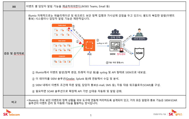 실제 해커들의 자료를 살펴보면 △SK텔레콤과 관련한 자료에서는 SK쉴더스에서 제공하는 솔루션을 통한 검증 및 증적자료와 함께 알람과 통보 기능과 자동화 기능에 대한 설명자료가 제시되어 있다.