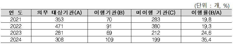 ▲최근 4년간 공공기관 ESS 설치의무 이행 현황
