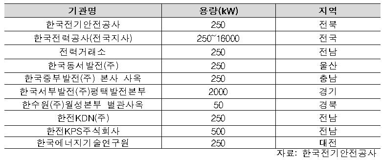 국회 기후에너지환경노동위원회 박정 의원(더불어민주당, 파주시을)이 한국전기안전공사에 받은 자료에 따르면, 한국전기안전공사는 전북 전주 본사 부지에 250kW 규모의 ESS를 설치했지만 화재 위험 등을 이유로 현재까지 사용하지 않고 있다.