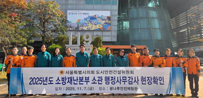 서울시의회 도시안전건설위원회(위원장 강동길)는 11월 7일(금) 제333회 정례회 서울소방재난본부 행정사무감사 중 ‘광나루안전체험관(광진구 능동로 238)’을 방문하여 재난안전체험 시설 운영 현황을 점검하고 시민의 재난 대응 역량 강화를 위한 교육환경 개선 필요성을 강조했다.