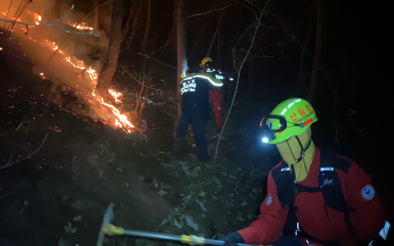 산림당국은 산불진화를 위해 산불진화차량 31대, 진화인력 179명을 신속 투입하여 02시 57분경 진화를 완료했다고 말했다.