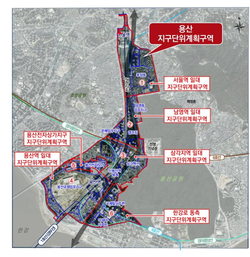 이번 결정의 핵심은 기존 약 336만㎡ 규모의 용산 지구단위계획구역을 1개 구역에서 6개 구역으로 재편하는 것이다. 이는 과도하게 넓은 단일 구역 체계로 인해 발생했던 계획·행정관리 한계를 해소하고, 행정 처리의 효율성과 계획 정비의 속도를 높여 주민 불편을 줄이기 위한 조치다.