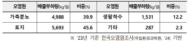 또한 완효성비료(완효성비료: 작물의 생육 기간에 맞추어 비료 성분이 서서히 방출되도록 설계된 비료 ) 사용을 확대하여 토양 내 잔류 양분을 줄이고, 논 물꼬조절장치 보급 등 최적관리기법(BMPs: 농업활동에서 발생하는 오염물질을 최소화하기 위해 과학적 분석에 기반하여 비료‧토양‧수자원 등을 적정 수준으로 관리하는 표준화된 관리기법) 을 확산한다.