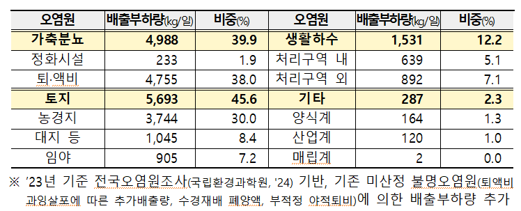 농경지에 대해서는 △비료 과다살포 방지, △살포된 비료의 농경지 외 유출 저감, △유출된 양분의 비점오염저감시설을 통한 처리 등 오염물질의 유출경로를 고려한 관리체계를 구축한다.