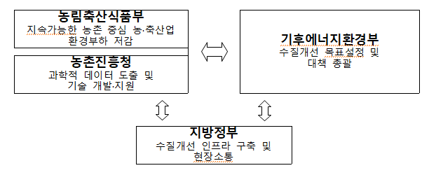 농촌진흥청은 과학적 데이터 기반의 기술 개발과 현장 적용을 지원한다. 비료 사용처방 고도화, 지역별 양분 권장투입량 산출, 농축산 유래 수질오염물질 저감을 위한 농업 R&D를 추진하는 등 기술적 기반을 강화한다.