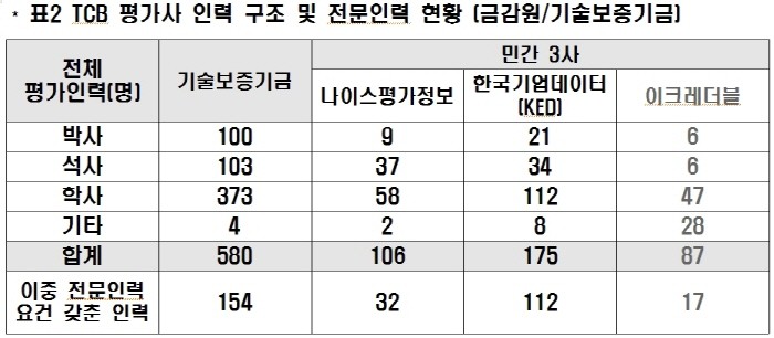 민간 TCB평가사, 전문 인력부족…기술금융 부실 평가 우려
