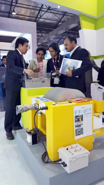공단은 이번 인도 해양투자박람회장에 해양환경 전시부스를 마련하고, 직접 개발하고 특허 등록한 자갈세척기와 DH5 유회수기를 선보였다.