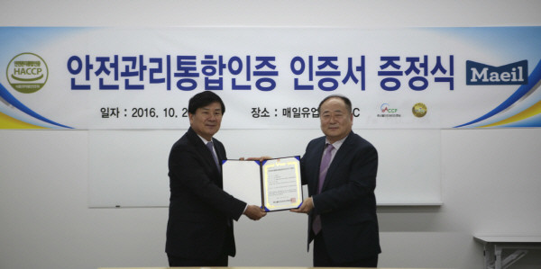 황성휘 축산물인증원 전무이사는 “국내 유업계 브랜드 최초로 매일유업이 안전관리통합인증을 받게 된 것은 매우 의미 있는 일”이라며 “앞으로 축산물안전관리인증원도 유업계 발전을 위해 노력하는 동시에, 소비자가 안심하고 축산물을 섭취할 수 있도록 제도 확산을 위해 지원을 아끼지 않을 것”이라고 덧붙였다.