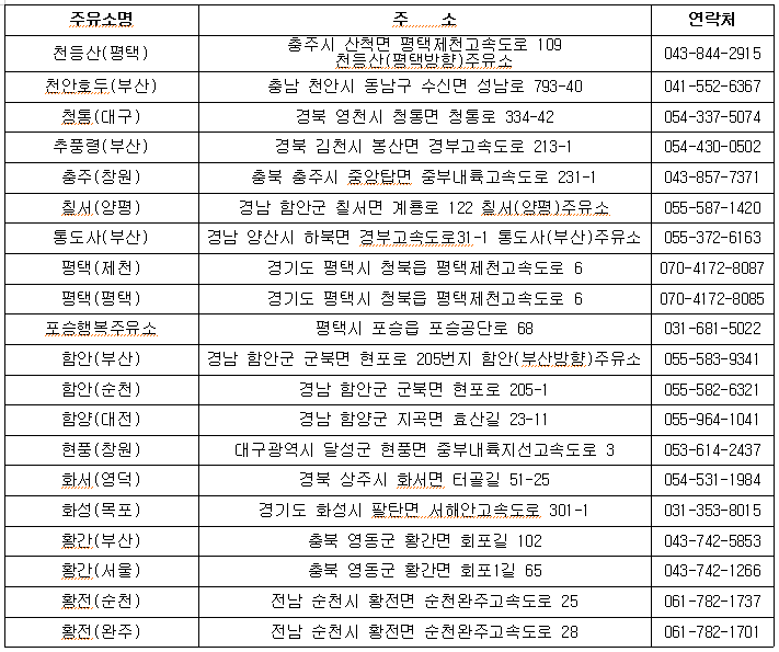 주요 거점지역 주유소 목록(100개소)