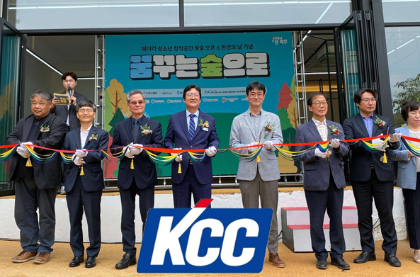 KCC는 최근 파주시와 '헤이리 청소년 창작공간 꿈숲' 개관식을 가졌다고 밝혔다. 개관식에는 손배찬 파주시청소년재단 대표이사, 박관선 헤이리 이사장, 윤후덕 국회의원, 김상준 KCC 상무 등 주요 관계자가 참석했다.