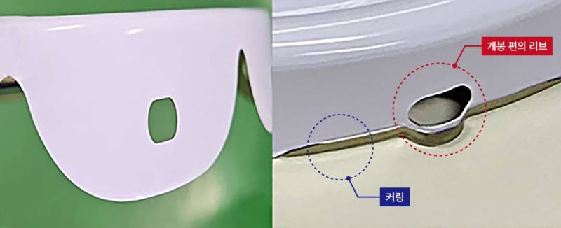 KCC는 18리터 페인트 원형캔을 생산하는 협력업체 OJC와 손잡고 ▲캔을 밀봉하기 위한 뚜껑의 날개 수를 16개에서 12개로 줄이고 ▲날개에 홈(리브)를 추가해 개봉 효율을 증대시켰으며 ▲날개 끝을 말아 올리는 커링 디자인을 적용해 안전성을 높였다.