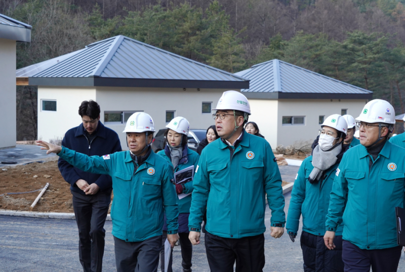 ▲임상섭 산림청장이 충남 금산군 국립금산자연휴양림 조성 사업지에서 공사추진 현황을 점검하고 있다.<사진=산림청 제공>