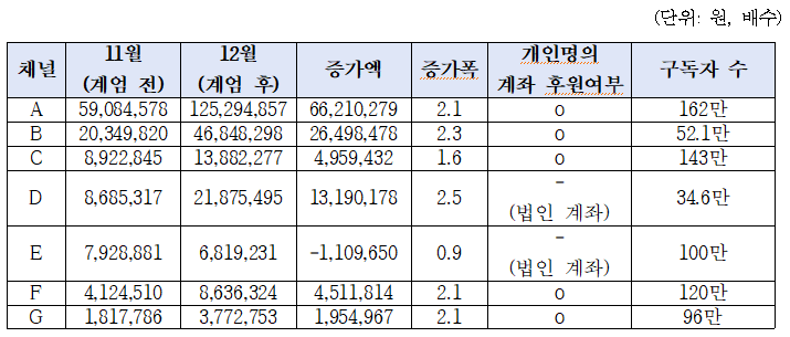 최근 정일영 의원은 유튜브 분석 사이트 플레이보드 자료 분석을 통해 작년 11월 기준 극우·보수성향 유튜버의 슈퍼챗 수입 순위 상위 7개를 분석한 결과, 6개의 채널에서 12.3 비상계엄이 있던 12월의 슈퍼챗 수익이 전월과 비교해 평균 2.1배 늘어난 것으로 확인한 바 있다.