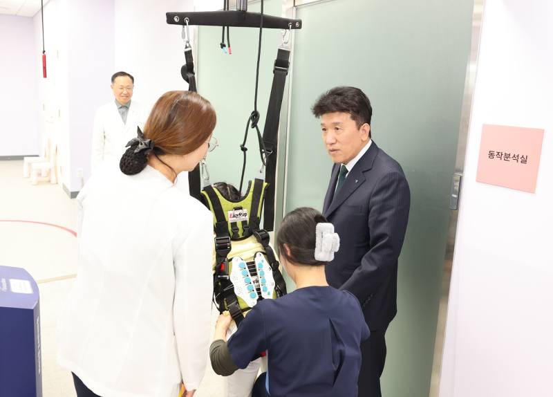 이날 전달식에는 함영주 하나금융그룹 회장이 참석해 장애 아동ㆍ청소년이 이용하는 다양한 보조기구를 살펴보고, 재활 치료를 받고 있는 장애 아동들에게 따뜻한 격려와 응원의 말을 전했다.