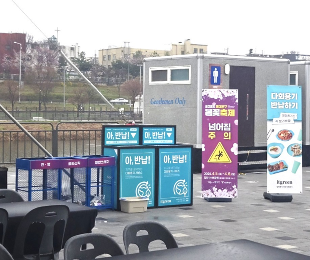 이번 축제는 ‘1회용품 없는 친환경 축제’를 목표로 1회용 플라스틱, 스티로폼, 비닐, 나무젓가락 등을 전면 배제하고 총 5만 개의 다회용기를 도입해 운영됐다. 지난해에는 봄꽃축제와 선농대제 등 일부 행사에서 시범적으로 다회용기를 도입했으나, 연중 운영 체계를 갖추고 전면적인 다회용기 지원에 나선 것은 이번이 처음이다.