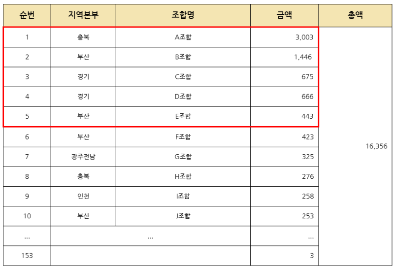 뿐만 아니라 여비 규정에도 없는 골프장 행사 참석 여비도 지급됐다. 최근 5년간 153개 신협, 총 1억 6356만 원이 지급했으며, A조합이 3000만 원, B조합 1400만 원, C조합 675만 원 등 상위 5곳이 전체 지급액의 38.1%를 차지했다.
