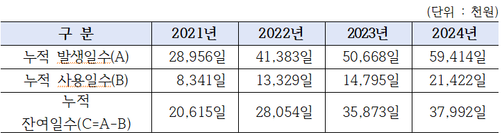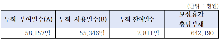 4만 일 미사용 휴가 누적, 38억 원대 잠재 부채