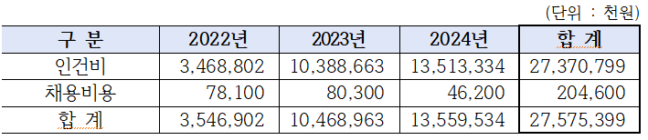 또한, 일시적인 인력 공백을 메우기 위한 임시직 채용 규모도 커져 지난 3년간 임시직 인건비 및 채용비용으로 약 276억 원이 소요되는 등 비효율적인 재정 지출이 이어지고 있다.