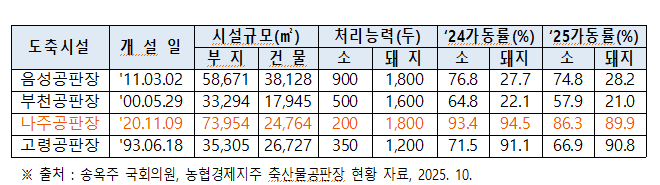 이와 관련 농협경제지주가 운영하는 축산물 공판장을 비교해 보면, 품질관리가 용이한 최신 도축시설일수록 수요가 많아서 가동률이 높게 나타났다.