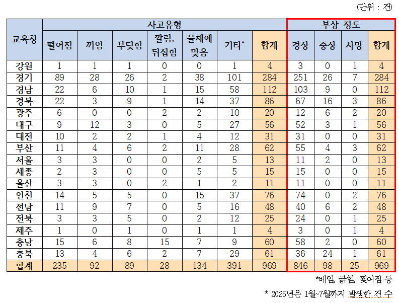 국회 교육위원회 백승아 의원(비례대표)이 전국 시·도교육청으로부터 제출받은 국정감사 자료에 따르면, 2022년부터 2025년 7월까지 교육청 발주 공사현장에서 발생한 산업재해는 총 968건으로 집계됐다. 이 중 사망사고는 24건에 달했다.