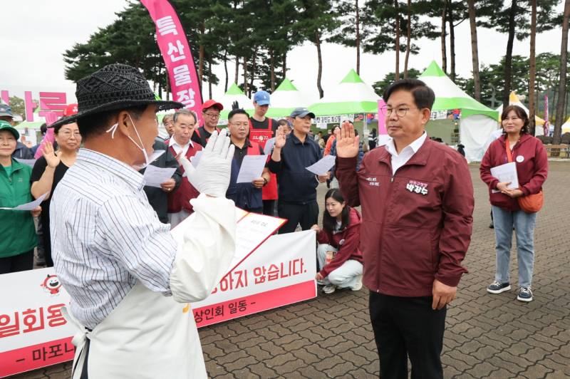 박강수 마포구청장은 “마포를 대표하는 새우젓축제에서부터 위생과 친환경, 신뢰의 약속을 실천해 나가겠다”라며, “신뢰할 수 있는 장터, 바가지요금 없는 거래, 믿을 수 있는 품질, 친절한 응대로 기억될 수 있도록 오늘의 다짐을 꾸준히 지켜가겠다”라고 말했다.