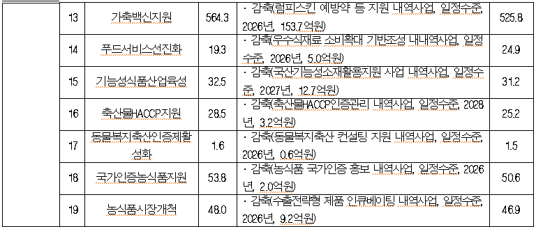 농림축산식품부 52개 사업, 해양수산부 28개 사업, 농촌진흥청 6개 사업, 산림청 10개 사업, 해양경찰청 1개 사업 등 총 97개 국고보조사업 중 ‘정상추진’ 평가를 받은 사업은 유일하게 해양수산부 소관 3개 사업으로, 이는 전체 사업의 3.1%에 불과했다.
