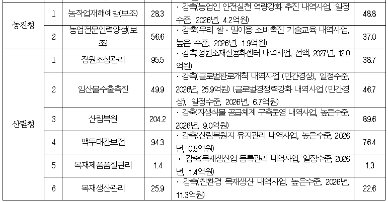 이어 윤 의원은 “정부는 국고보조사업의 연장평가를 형식적으로 끝낼 것이 아니라, 부실 사업에 대한 과감한 구조조정과 함께 사업운영 개선 지적 사항을 즉각 이행할 수 있도록 제도적 장치를 마련해야 한다”며 “농어업 관련 예산이 낭비되지 않고 실제 농어민과 현장에 실질적인 도움이 될 수 있도록 국고보조사업 관리 시스템을 전면 개편해야 한다”고 촉구했다.