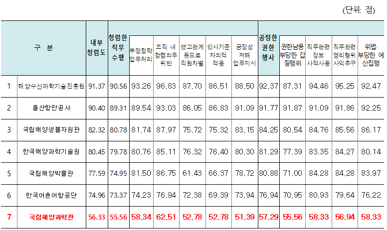 국민 신뢰 저버린 국립울진해양과학관... 내부청렴도 4년 연속 꼴찌 충격!