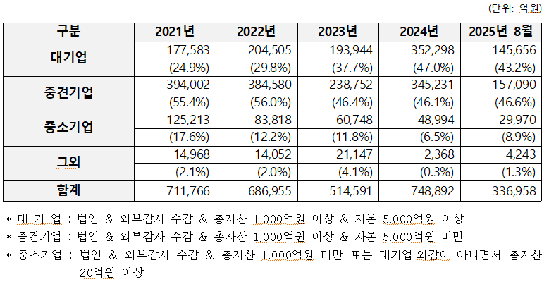 대기업 보증 비중 24.9%→47.0% 급등, 중소기업은 17.6%→6.5% 급감