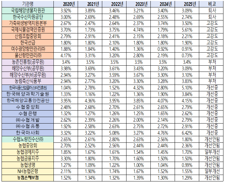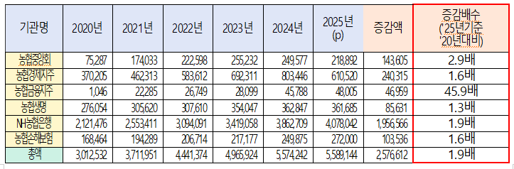 자료에 따르면, 농협중앙회와 농협은행·농협생명·농협손해보험 등 주요 계열사들이 납부한 장애인 고용부담금은 2024년 기준 55억 7천만 원에 달했다. 이는 국회 농림축산식품해양수산위원회(이하, 농해수위) 피감기관 전체 납부액 80억 5천만 원 중 약 69.2%를 차지하는 규모로, 농협그룹이 사실상 ‘고용 대신 부담금 납부’로 의무를 대신하고 있는 것으로 확인됐다.