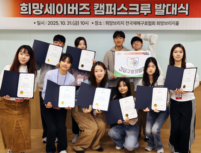 희망브리지 신훈 사무총장은 “기후위기로 재난이 일상이 된 지금, 재난에 대한 관심은 그 어느 때보다 중요하다”며 “대학생들이 희망세이버즈로 함께하게 되어 매우 뜻깊고, 밝은 에너지와 작은 안전실천이 안전한 사회를 만드는 큰 힘이 될 것이라 기대한다”고 말했다.