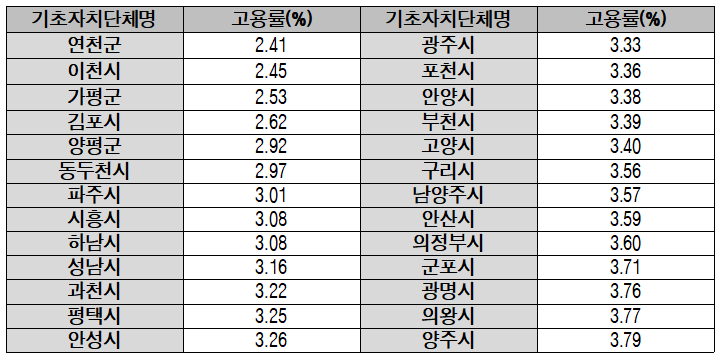 수도권에서는 경기도 31개 기초지자체 중 수원시·여주시·오산시·용인시·화성시를 제외한 26곳, 인천광역시는 10개 중 계양구·미추홀구·부평구·연수구를 제외한 6곳이 의무고용률에 미달했다.