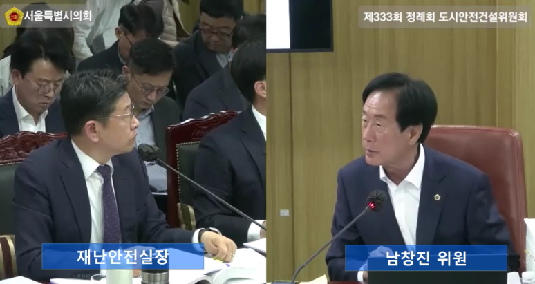 서울특별시의회 도시안전건설위원회에서 의정 활동 중인 남창진 의원(국민의힘, 송파2)은 4일 소관기관인 서울시 재난안전실의 2025년 행정사무감사를 실시하면서 7월 시청 앞 차량 보도 돌진 사고 후 서울시가 보강한 보도 차량방호울타리의 부실시공을 지적하고 보완을 요청하는 등 시민안전과 관련된 사안들에 대해 집중 질의했다.