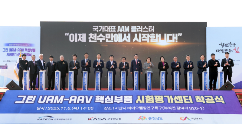 내년까지 총사업비 314억원이 투입되는'그린 UAM-AAV 핵심부품 시험평가센터'는 서산시 부석면 일대에 위치한 ‘서산 바이오웰빙연구특구’ 내에 구축되며, 2만 2,588㎡의 부지에 복합시험동, 비행성능시험동, 수소전기시스템평가동 등 5개 건물(연면적 2,915㎡)을 짓고 야외에는 비행시험장까지 건설된다.