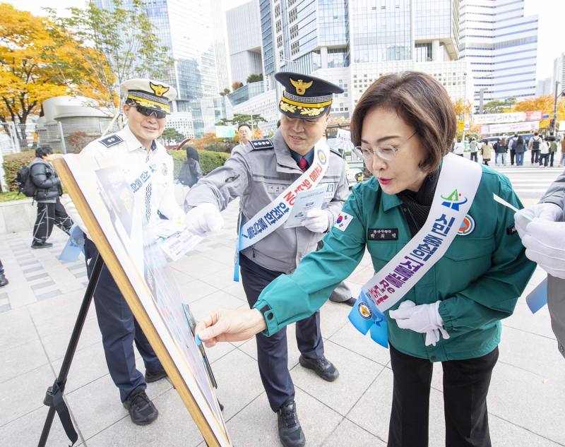 박희영 서울 용산구청장은 11일 용산역 광장에서 용산경찰서 관계자들과 함께 ‘교통법규 위반 근절 캠페인’에 참여했다.