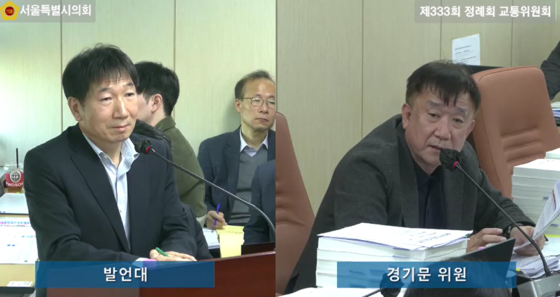 이에 대해 김기범 기술본부장은“투명하게 운영하겠다”라고 답변했다.▲ 경기문 의원(국민의힘·강서6)이 지난 12일 교통위원회 회의실에서 열린 행정사무감사에서 김기범 서울교통공사 기술본부장에게 질의하고 있다.