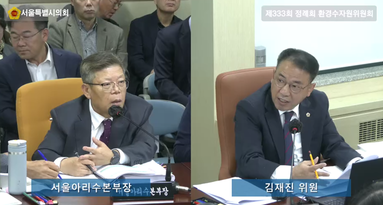 김 의원은 뚝도와 영등포 정수장의 대형펌프 설치사업이 보증효율 미달로 사고이월 처리된 데 이어, 올해 7월 준공 예정이던 암사정수장 사업 역시 동일 사유로 준공이 지연되고 있다고 지적하였다. 또한 2021년 암사정수장과 2022년 강북정수장에서 이미 감액 준공된 사례가 있었음에도 동일 업체가 연이어 사업을 수행하며 같은 문제가 반복된 것은 명백한 관리 부실이라고 비판하였다.