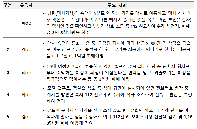 수상자에게는 경찰청장 명의의 감사장과 함께 KB국민은행이 마련한 100만원의 감사 포상금이 전달됐다.