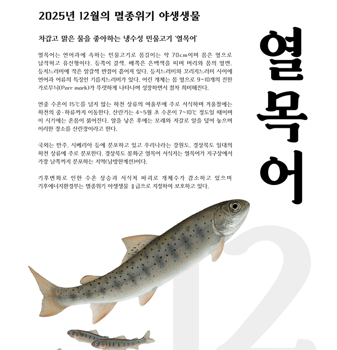 열목어 등 멸종위기 야생생물에 대한 자세한 정보는 국립생물자원관 누리집 또는 국립생태원 누리집 에서 확인할 수 있다.