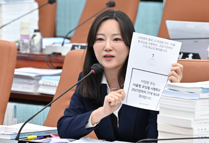 지난 5일 열린 서울시의회 예산결산특별위원회에서 국민의힘 윤영희 서울시의원은 교육청이 학교 조식 사업의 필요성을 인정하면서도 예산만큼은 적극적으로 확보하지 않은 점을 강하게 비판했다.