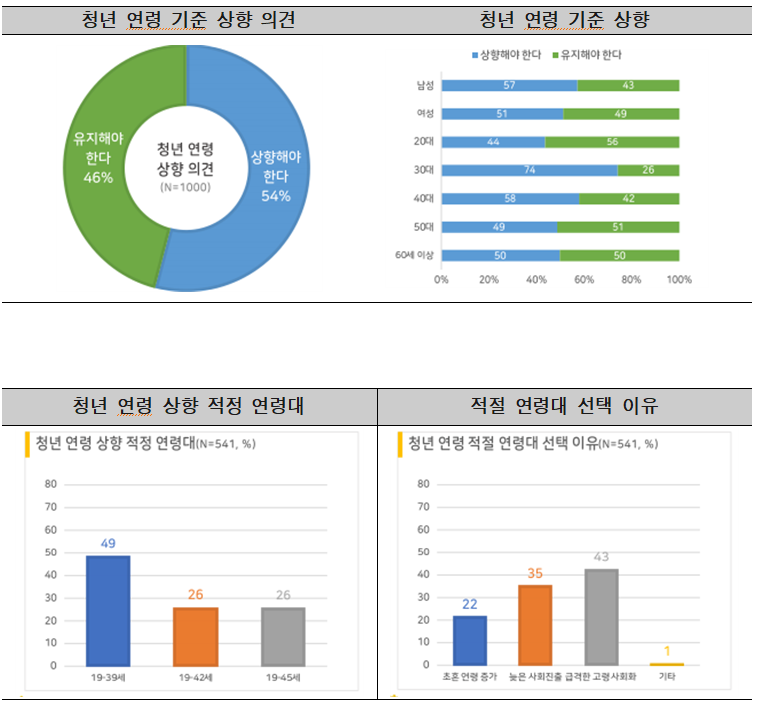 이숙자 운영위원장은 “청년 연령 상향에 대한 사회적 공감대를 확인할 수 있었다.”며, “이번 조사 결과는 최근 청년들의 취업난과 사회 진입 지연이 심각한 상황에서, 청년 연령 상향이 단순한 정책 조정이 아니라 시대적 요구에 부합하는 중요한 과제임을 시사한다.”고 말했다.