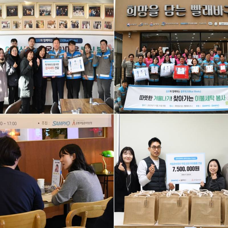 삼표시멘트는 강원도 삼척시에서 ‘찾아가는 세탁 서비스’를 진행했다. 대형 세탁이 어려운 독거 어르신과 장애인 가정, 아동공동생활가정을 방문해 이불 등을 수거·세탁·배달했으며, 건강식품 등 생활 지원 물품도 함께 전달했다.