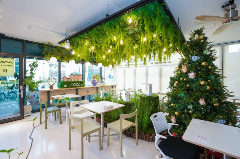 구는 센터 1층 쉼터와 3층 옥상 공간에 식물을 활용한 인테리어를 대폭 강화했다. 특히 크리스마스 시즌을 맞아 화려한 트리와 리스 장식을 더해, 방문객들이 연말의 설레는 분위기를 만끽할 수 있도록 꾸몄다.