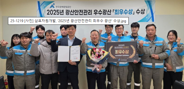 삼표자원개발은 이번 평가에서 장기간 무재해 달성을 중심으로 선진적인 안전관리 시스템 구축 및 운영, 전 임직원의 안전 의식을 고취시키기 위한 안전문화 확산 노력 등 광산 안전 관리의 모든 분야에 걸쳐 탁월한 성과를 인정받아 최우수 광산으로 선정됐다.