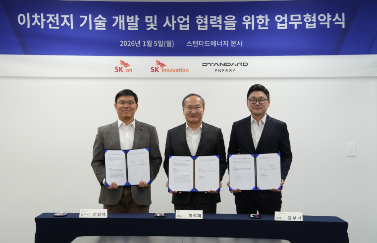 협약식에는 이석희 SK온 사장, 박기수 SK온 미래기술원장, 김필석 SK이노베이션 환경과학기술원장, 김부기 스탠다드에너지 대표 등이 참석했다.