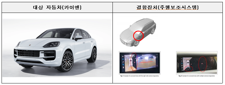 포르쉐 카이엔 등 45개 차종 39,894대는 차량의 전자기 간섭으로 인해 서라운드 뷰 카메라가 작동하지 않을 가능성으로 1월 26일부터 시정조치를 진행할 예정이다.